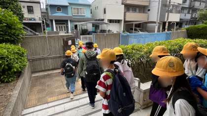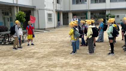 6年生が遠足に出かけました。行き先は弥生文化博物館です。気をつけて行ってね。