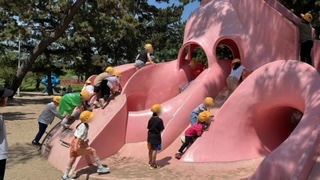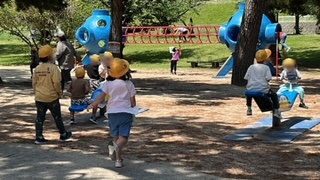 南遊戯場で1回目のお遊びタイムです。たくさんの遊具があって、とても楽しそうです♪