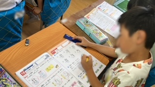算数の学習です。引き算の筆算について、今まで学習したとこをおさらいして、算数ノートの練習問題で確かめていました。