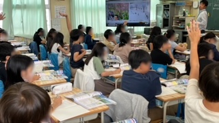 社会科の学習で、日本の風土についての学習です。日本の暖かい地域(沖縄)と寒い地域(北海道)の様子を地図帳や資料集などを使って調べていました。大阪との違いにびっくりしている子もいました。