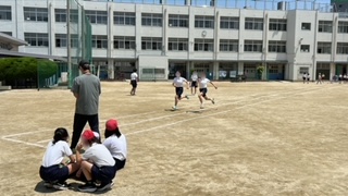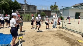 6年生の学習です。体育の学習で、体力テストの計測をしていました。50m走と立ち幅跳びの2つでした