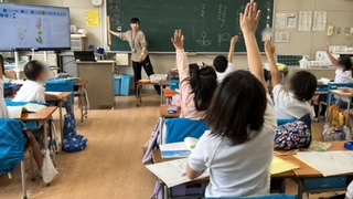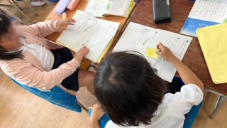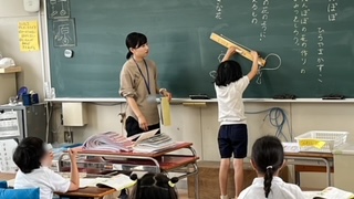 説明文の読み取りをワークシートに沿って考えていました。隣の人と意見交換したり、黒板に意見を発表したりしながら進めていました。