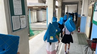 今年度1回目の避難訓練をしました。地震を想定した第一次避難と津波を想定した第二次避難の二段階の避難訓練でした。静かに早く活動できました。