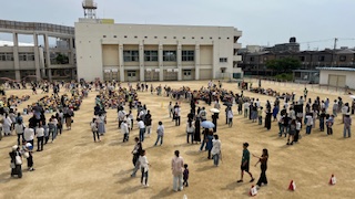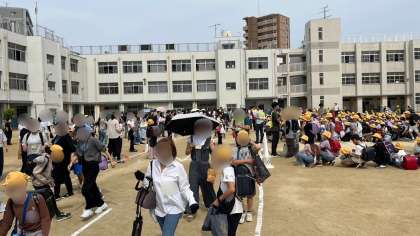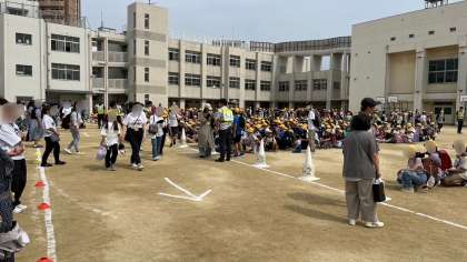 校内の避難訓練の後、保護者の方々とともに児童引き渡し訓練をしました。災害発生時に出来るだけスムーズに安全に児童の引き渡しが出来るようにしたいです。