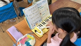 音楽の学習で鍵盤ハーモニカの練習をしていました。「かっこう」の曲について自分が上手く弾けないところを自主練していました。