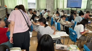 算数の学習です。グラフの学習で、折れ線グラフの書き方を練習していました。