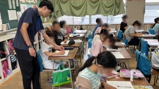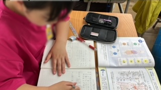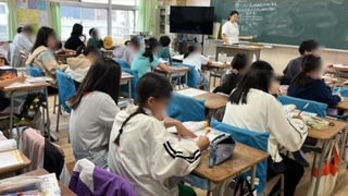 上段は1組、理科でヒトの身体のつくりについてのまとめをしていました。中段の2組と下段の3組は算数の分数の掛け算の単元の学習でした。