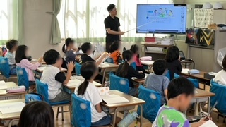 上段は1組、算数の引き算の学習です。中段は2組、社会科で大阪府の田や畑などの様子についての学習です。下段は3組、算数プリントの整理、ドリルやノートの丸付けなどをしています。