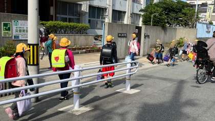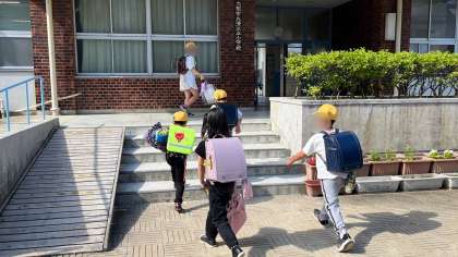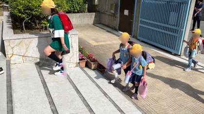 6月3日(月)です。今月も元気に頑張りましょう。姉妹で手を繋いでの登校です、微笑ましいですね。