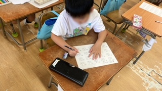 算数の学習です。数の合成(7は4と◯ですなど)のプリントに取り組んでいました。