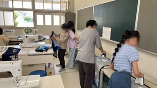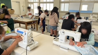 6年生の様子です。家庭科の裁縫実習でエプロンを製作していました。アイロンでしっかり折り目をつけてからミシンで縫っていました。