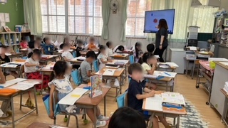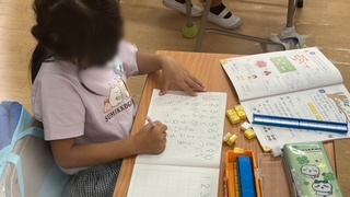 算数で足し算の学習です。問題にそって、式と答えをきちんとノートに書いていました。答えの単位も問題から考えて忘れないようにしていました。