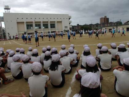 本日、運動会の全体練習2日目でしたが、練習開始後すぐに、雨が降りだしてすぐに校舎内に避難しました。瞬く間に、大雨となり中止になりました。