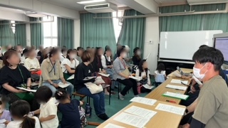参観後、6月20日〜21日に予定している5年生一泊移住の保護者説明会が行われています。保護者のみなさんに安心してお子さんを参加させてもらえるよう、活動場所や内容などをしっかり説明しています。