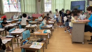 算数の学習で、足し算になるような問題を考えていました。「あわせていくつになりますか」「あわせて何人ですか」など、「あわせて」という言葉が大切であることを実感していました。