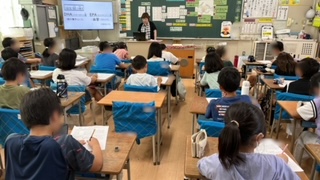 今日は4年生が栄養指導をしていただきました。魚に含まれる栄養素について話を聞いていました。