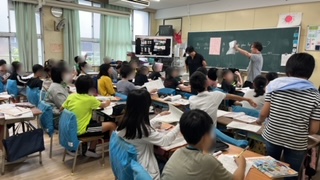 C-NETとの英語の学習です。ペアになってC-NETからでたテーマに沿って尋ね合いをしていました。尋ねることはプリントにまとめていました。