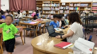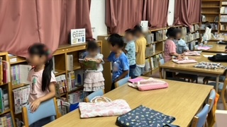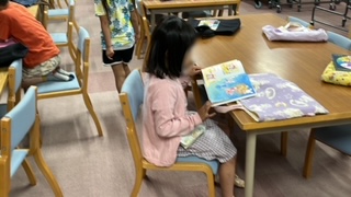 図書の時間です。借りていた本を返したあと次の本を選んで読んでいます。
