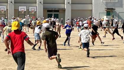 フレンド集会では、ケイドロ鬼ごっこで運動場を目一杯使って走り回りました。