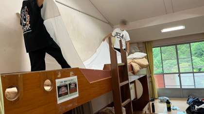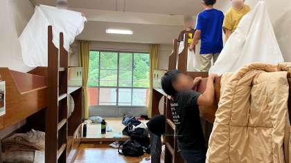 室内オリンピックも終わり、各自部屋に入りました。まずは、着替えとベッドメイキングです。皆で協力して進めましょう♪