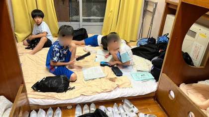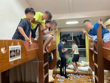 本日最後の予定、生活班の班長会議が行われています。明日の予定の確認や今日の反省などを話し合っています。班長以外は部屋で日記を書いたりして過ごしています。