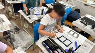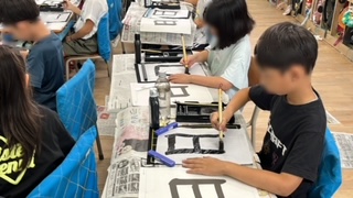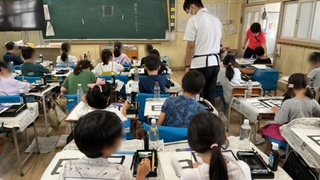 国語の書写、毛筆の学習です。今日は「日」を練習しています。字を丁寧に書くのはもちろんのこと、正しい姿勢で書くこともしっかり意識させています。