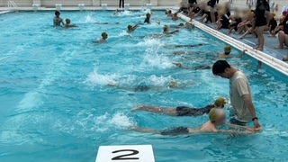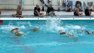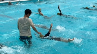 体育のプール水泳学習の様子です。バタ足からクロールへと練習を進めていました。子どもたちが水の中にいる方が温かいって言ってました。
