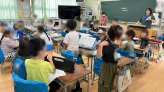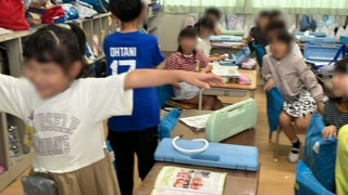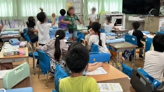 音楽の学習です。「ドレミの歌」に合わせて階名体操をしていました。間違えずにできるかな?