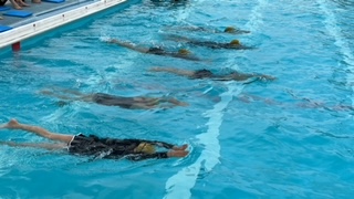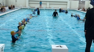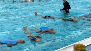 蹴伸びが綺麗にできていました。ビート板を使ってラッコ浮きでは、体の力を抜いて上手く浮いていました。