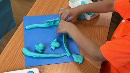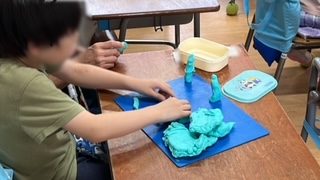 粘土で理想のお家を作っていました。大きなお城をイメージして作っていく子やお菓子のお家を作ろうとしている子など、個性が溢れていました。