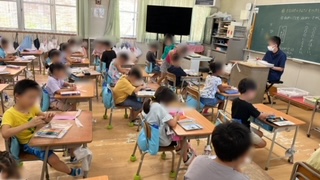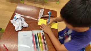 1年生の様子です。七夕に向けた飾りを作っていました。この時間は、短冊を作っている子が多かったです。