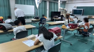 住吉区が自主学習習慣の定着と基礎学力向上を目指して取り組んでいる「すみよし学習クラブジュニア」の様子です。本校では、10名の児童が参加しています。今日は算数の課題に取り組んでいました。講師の先生は机間巡視しながらアドバイスをしてくれます。和気あいあいと頑張っていました。