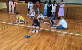 理科の学習です。電流の実験で作ったキットを実際に走らせていました。回路が正しく繋がっているかの確認をかねています。