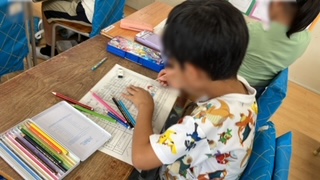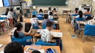 1学期を振り返ってプリントにまとめていました。各教科での頑張ったことや反省などを短い文章にしていました。