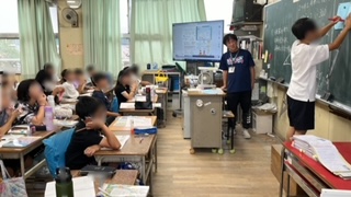 算数の図形の学習です。四角形の内角の和について考えていました。内角を求める時、いくつかの三角形に分ければわかりやすいので、その分け方について発表していました。
