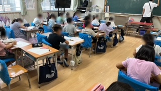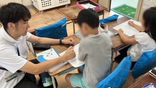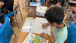算数の学習で、割り算のプリントに取り組んでいました。静かに黙々と頑張っていました。わからないところは挙手して先生にアドバイスを受けていました。