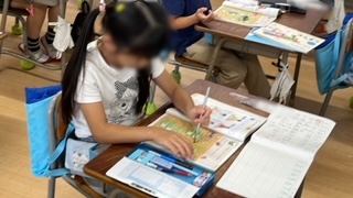 1学期の算数はまとめの単元に入っています。足し算や引き算の計算をして正しい答えの方向に進むと脱出できる迷路に挑戦していました。