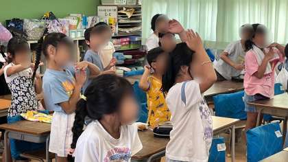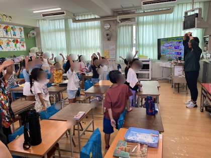 C-NETとの英語活動の時間でした。曜日の英語を覚えられるようゼスチャーをつけて練習していました。