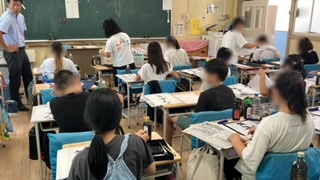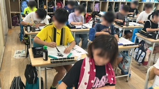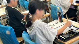 国語の習字、毛筆の練習をしていました。一字一字筆使いを丁寧にしっかり書いていました。書く姿勢もとてもいいです。