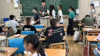 上段が1組、2学期の目標カードを作っていました。中段は2組、夏休みの課題を出していました。下段は3組、夏休みの課題についてみんなに説明していました。