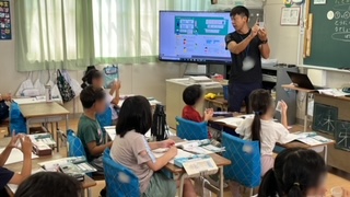 算数の学習です。水のかさの表し方について学んでいました。実際のdlビーカーを手元に置いて説明を聞いていました。