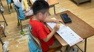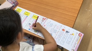 漢字ドリルを使って漢字学習をしていました。今日は「一」の字です。漢字の成り立ちや心もち右上がりに書くことなどを説明してから練習に入っていました。