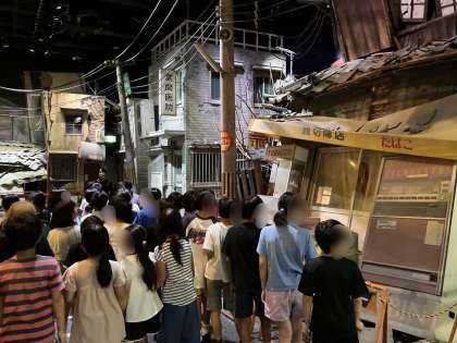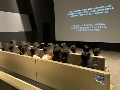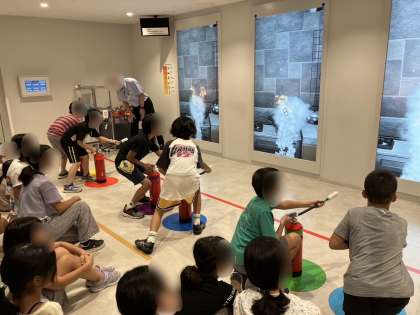 あべの防災センターの見学が始まりました。最初に防災についてのビデオを観ました。消火器を使う実習をしたり大地震後の街の様子の見学などは学級単位で回りました。