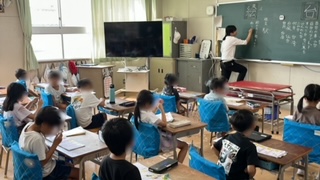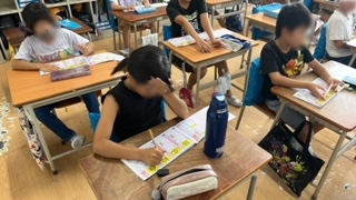 国語の学習で新出漢字の練習をしていました。漢字ドリルで書かれている字を丁寧になぞったり、書き順や「とめ」「はね」「はらい」に気をつけて丁寧に練習していました。