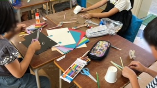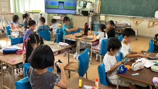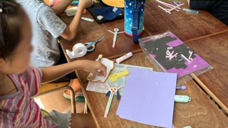 図工の学習で、ストローを使って動くオモチャを作っていました。
