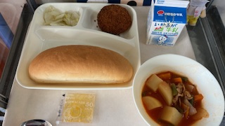 今日の献立は、チキンレバーカツ、ケチャップ煮、キャベツのバジル風味サラダ、コッペパン、マーマレード、牛乳でした。ごちそうさまでした。