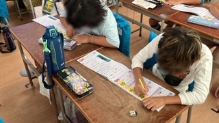 国語の新出漢字の学習です。書き順をみんなで確認して練習します。一線一線丁寧に書くよう心がけます。