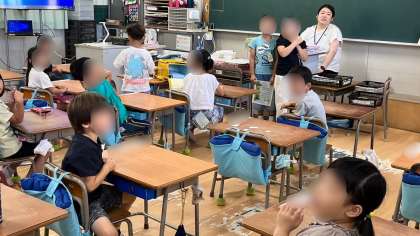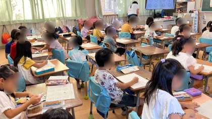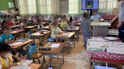上段は1組、中段は2組、下段は3組の様子です。それぞれ、朝のプリントやその答え合わせなどをしていたり、日直が司会をして昨日の出来事を発表したりしていました。