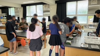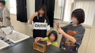 理科の学習で、水溶液の性質について調べていました。薄い塩酸にいろいろな金属を入れて、その様子を観察していました。