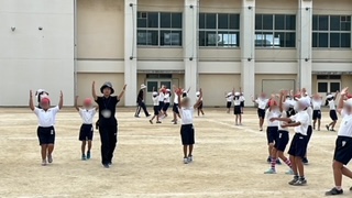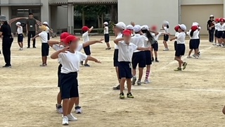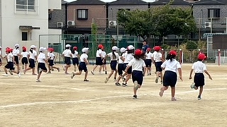 運動会練習です。隊形移動も入れながら動きの練習をしていました。